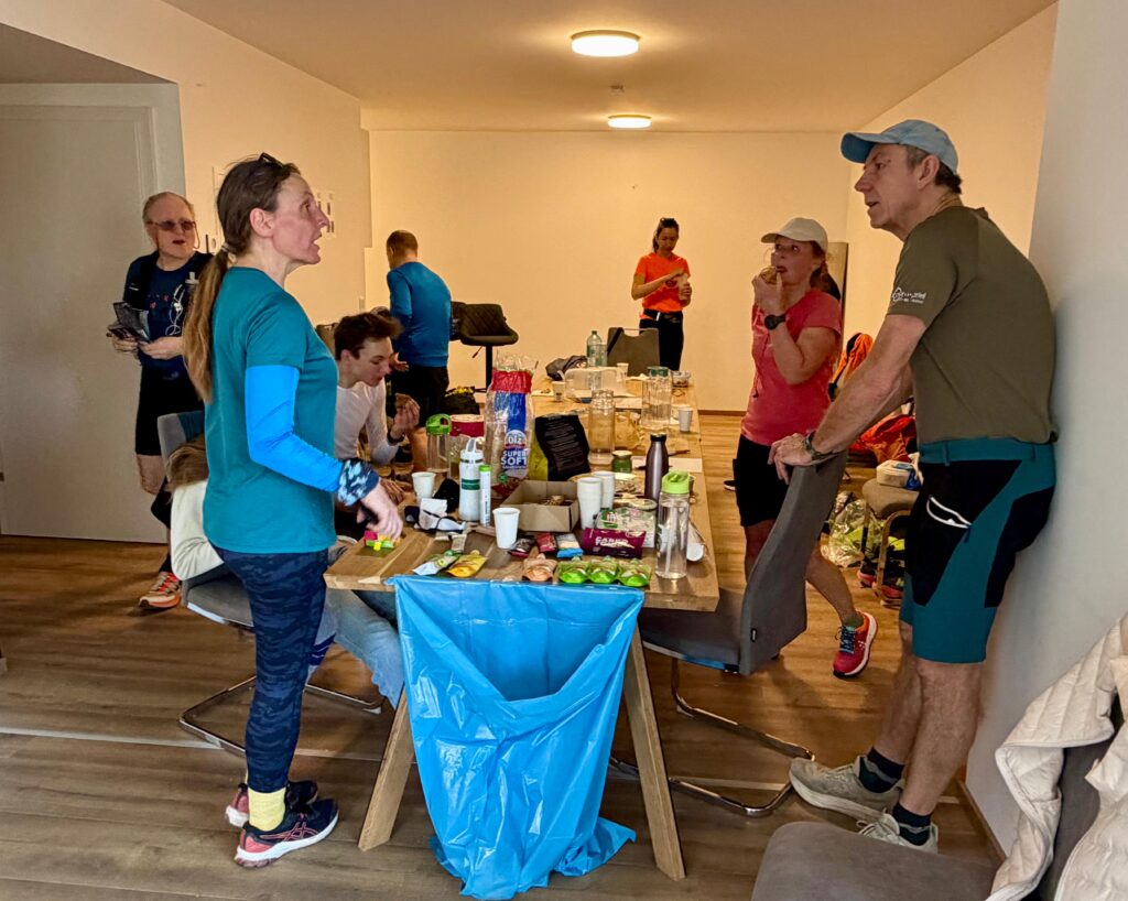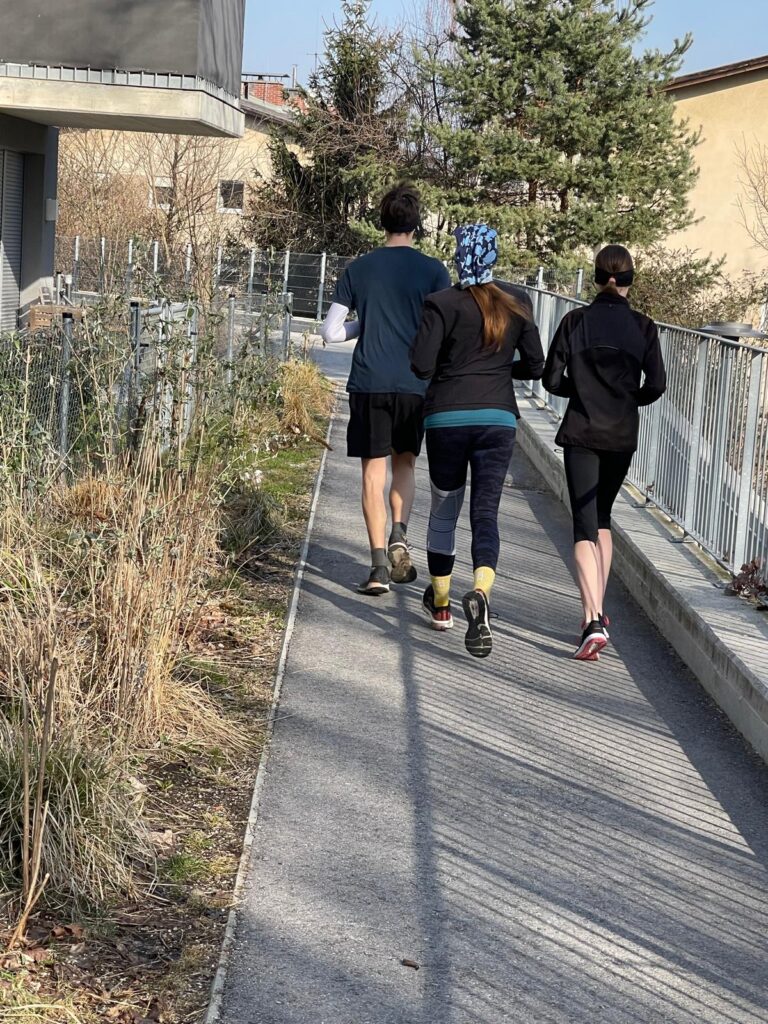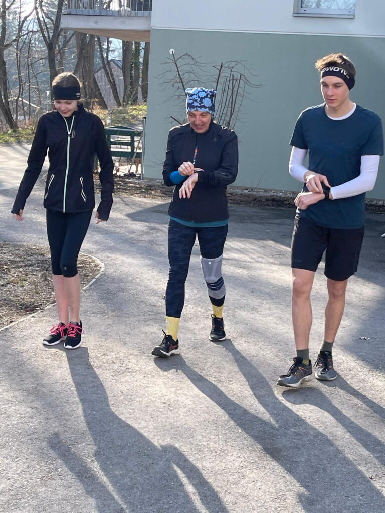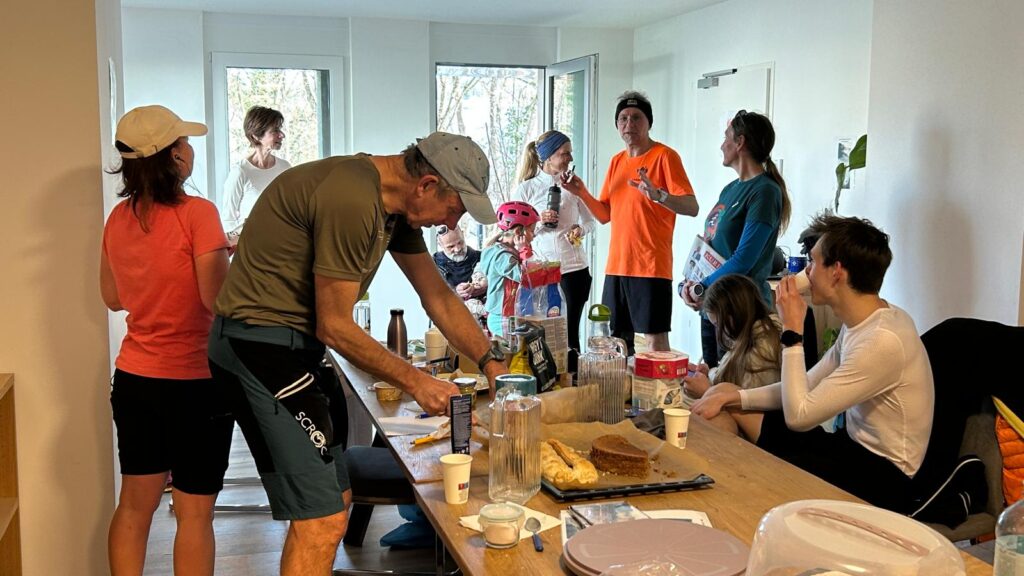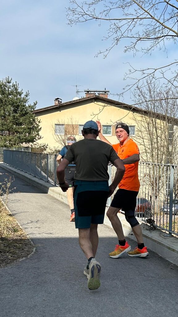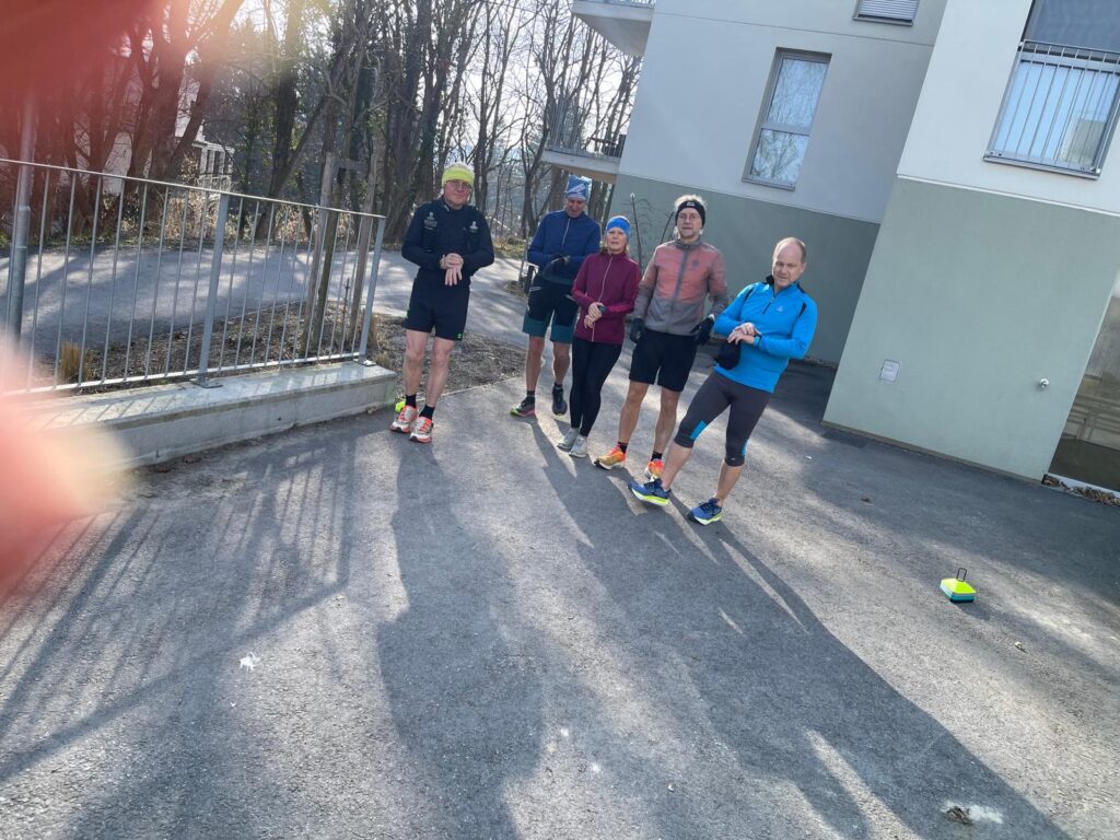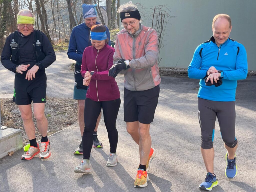 Um neun Uhr startete der Lauftreff. Einige starteten bereits um neun, der Rest trudelte bis Mittag ein – es war ja kein Wettbewerb, sondern ein Lauftreff mit sozialer Komponente. Dementsprechend gab es angeregte Gespräche, sowohl während dem Runden drehen, als auch in der Labe Almersbergstraße, zwischen den Laufeinheiten. Um 16:00 Uhr war dann Schluss. Immerhin bis zu 7 Runden wurden absolviert – Erich finishte damit 46,942 km (1 Runde sind 6,706 km).